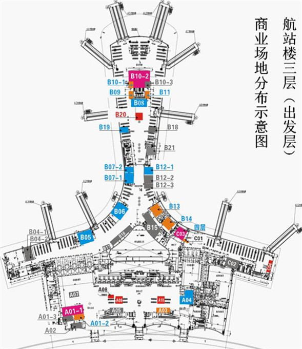 航站樓一層(到達層)商業(yè)場地分布示意圖