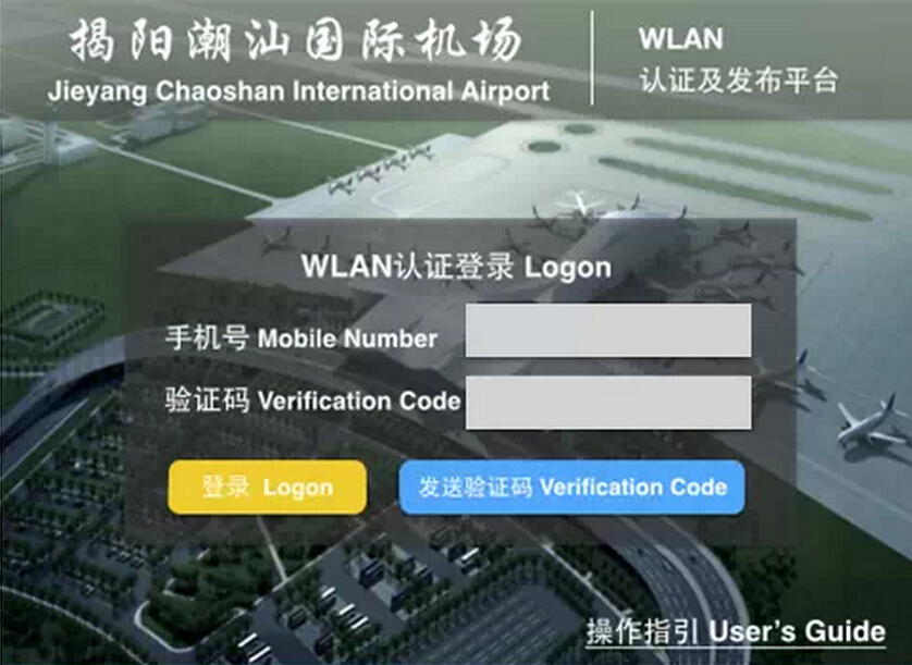 為了讓出行旅客更好地免費(fèi)使用揭陽潮汕機(jī)場無線網(wǎng)絡(luò)服務(wù),機(jī)場已開通無線上網(wǎng)接入功能。選擇機(jī)場免費(fèi)無線網(wǎng)絡(luò):“AIRPORT-FREE-WIFI”,通過瀏覽器打開任意網(wǎng)頁,根據(jù)提示輸入手機(jī)號(hào)碼和獲取手機(jī)短信驗(yàn)證碼登錄即可。