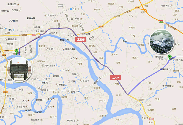 揭陽市區(qū)-206國道-揭陽潮汕機(jī)場(chǎng)